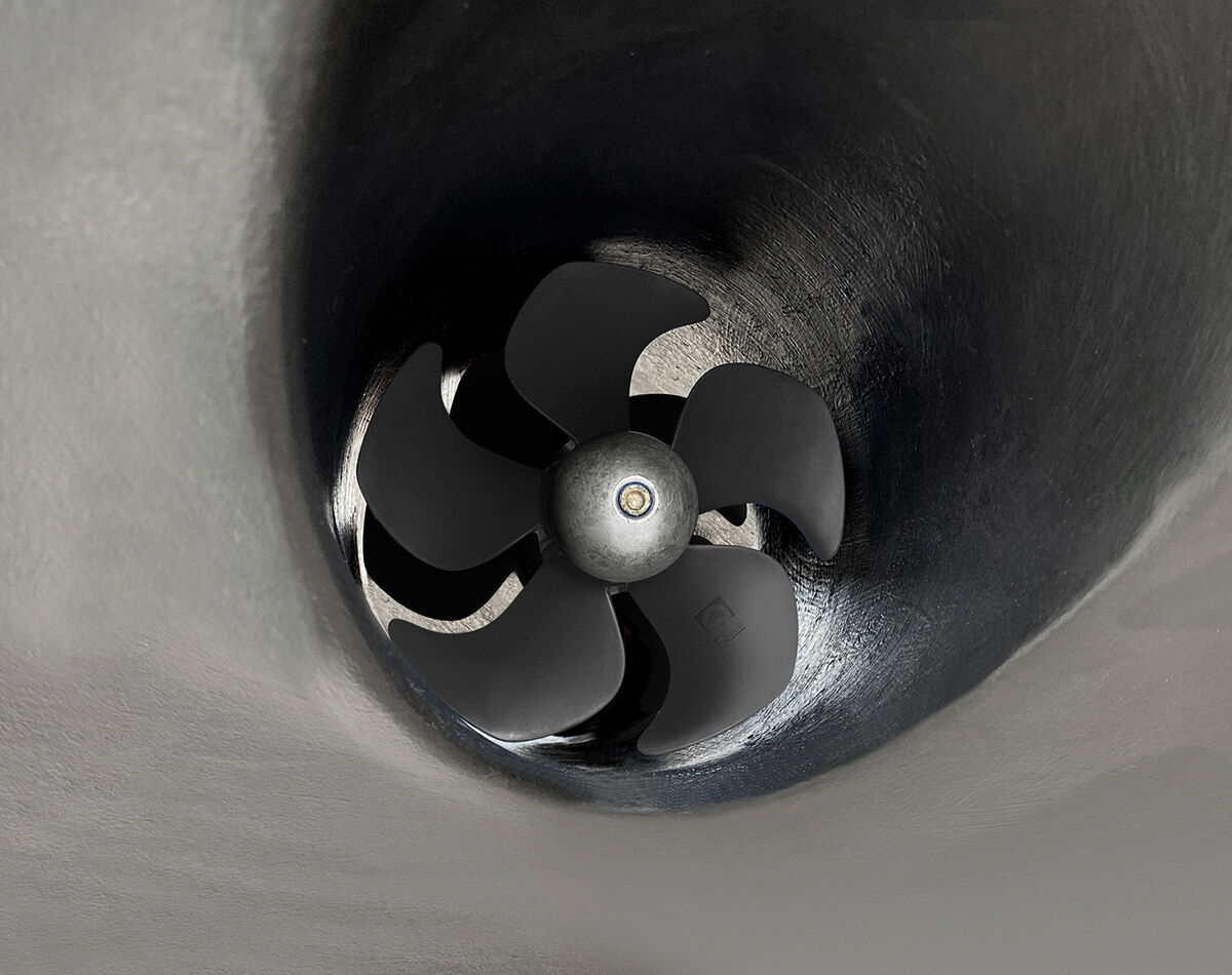 Tunnel thrusters are the most common type of thrusters. The tunnel is installed through either the bow or the stern, and below the waterline. The tunnel protects the propulsion unit and concentrates the propeller’s thrust.