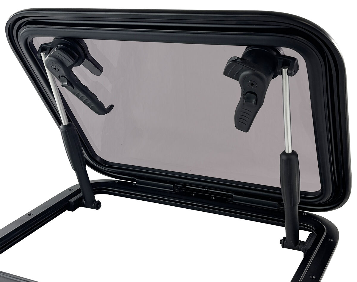 Features an adjustable length, twist lock mechanism, and removable design that allows full 180° hatch opening when needed.