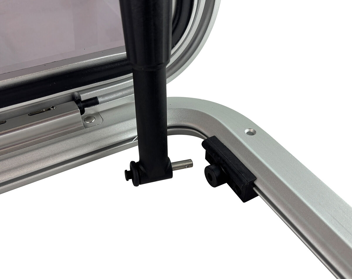 Features an adjustable length, twist lock mechanism, and removable design that allows full 180° hatch opening when needed.